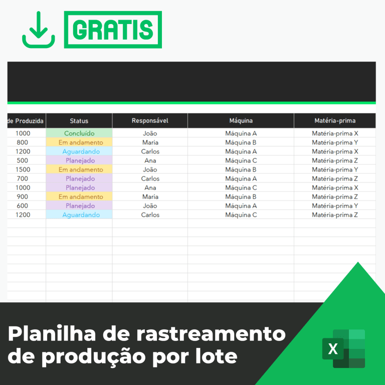 - Acompanhe regularmente a planilha, atualizando as informações à medida que os lotes de produção evoluem.