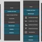 No Controle de Manutenção, você cadastra oficinas e serviços, lança as manutenções por veículo, e verifica o histórico e os custos totais ou por veículo.