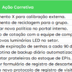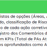 Para acompanhar o andamento das ações corretivas, a seção “Plano de Ação” reúne campos como ID da Auditoria, Ação Corretiva, responsável, prazo, data de conclusão, status e dias em aberto. Nesse sentido, esse controle ajuda a verificar pendências, reduzir atrasos e garantir que cada etapa seja executada dentro do prazo.