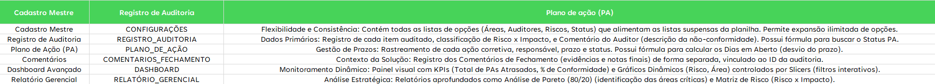 Funcionalidades da Planilha de Auditoria Interna em Excel