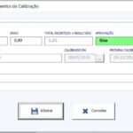 Na opção calibração, você tem a possibilidade de lançar as informações a respeito do processo de calibração dos instrumentos de medição, tendo como resultado: