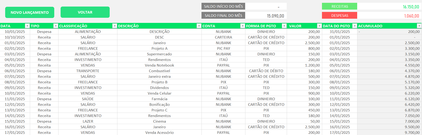 Nesse sentido, essa ferramenta foi desenvolvida por profissionais qualificados, seguindo critérios de uma boa organização pessoal. Com ela, é possível acompanhar com precisão todos os seus gastos.
