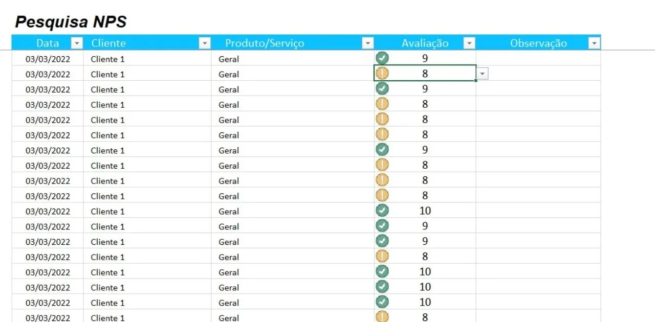 Planilha Indicador NPS: solução simples e prática para reunir dados de pesquisas e obter o NPS dos seus produtos ou empresa.