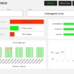 A Planilha Indicador OEE com Dashboard oferece gráficos completos para monitorar a produtividade, disponibilidade e qualidade das máquinas, turno a turno.