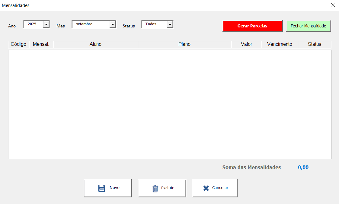 • Planilha gera as parcelas dos alunos ativos de forma automática;