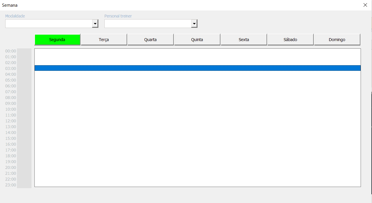 • Oferecemos uma tela que mostra, de forma gráfica, a disponibilidade para alocar alunos de acordo com a modalidade e os professores. Sendo assim, isso facilita a organização dos horários na academia.
