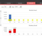 Em dashboards, estarão representados de forma visual, representados por Cards, Gráficos, suas Receitas e Despesas, sendo possível acompanhar ano a ano, mês a mês, todas as suas necessidades, seus gastos, prejuízos etc. E possui as seguintes funcionalidades: