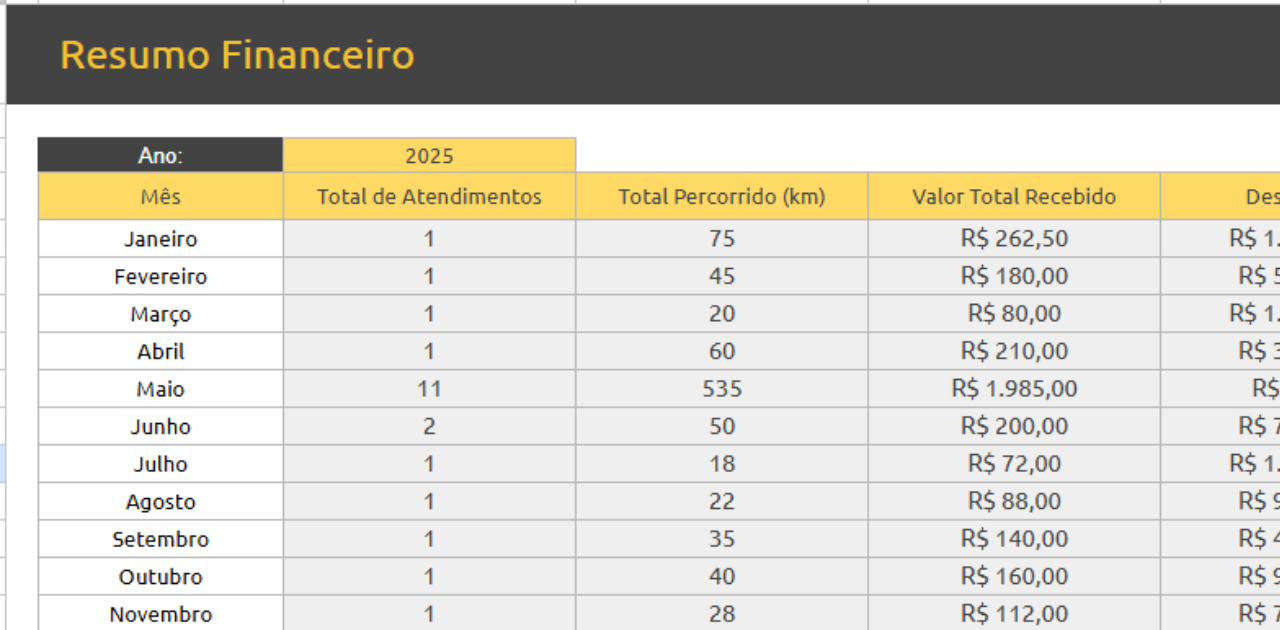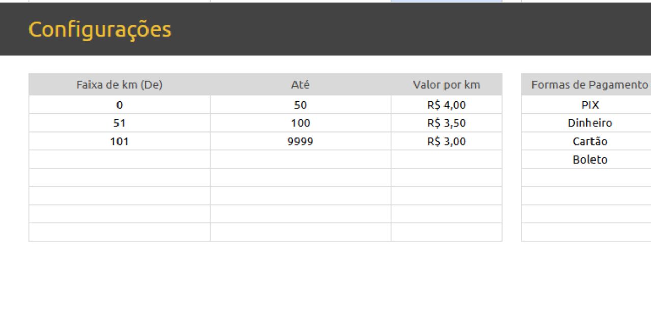 Insira separadamente todos os gastos recorrentes do negócio, desde folha de pagamento e combustíveis até manutenção de veículos e peças.